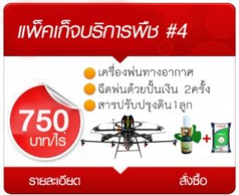 บริการฉีดพ่นสมุนไพรปรับสมดุลพืช "ปั้นเงิน" ด้วยเครื่องพ่นนวัตกรรมอากาศยานการเกษตร 2 ครั้ง ตามช่วงระยะเวลาที่เหมาะสมของแต่ละชนิดพืช บวกกับสารปรับปรุงดิน 1 ลูกราคา750 บาท