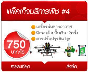 บริการฉีดพ่นสมุนไพรปรับสมดุลพืช "ปั้นเงิน" ด้วยเครื่องพ่นนวัตกรรมอากาศยานการเกษตร 2 ครั้ง ตามช่วงระยะเวลาที่เหมาะสมของแต่ละชนิดพืช บวกกับสารปรับปรุงดิน 1 ลูกราคา750 บาท